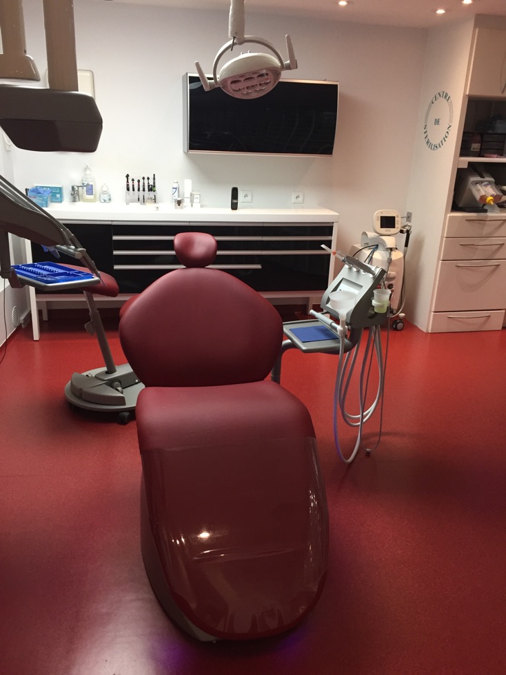 Ce cabinet possède un système de désinfection de l’eau circulant dans les instruments utilisés pour les soins.